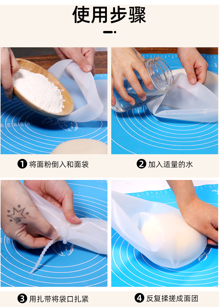 4.作為不粘的揉面墊、推面墊;放烤箱里用的不粘烘焙墊,可作臨時的防燙和防粘手套、熱水袋;也可作為旅行用食品袋、多用途袋等。