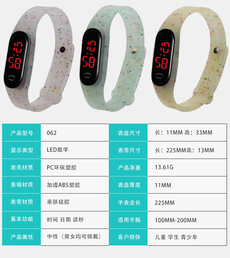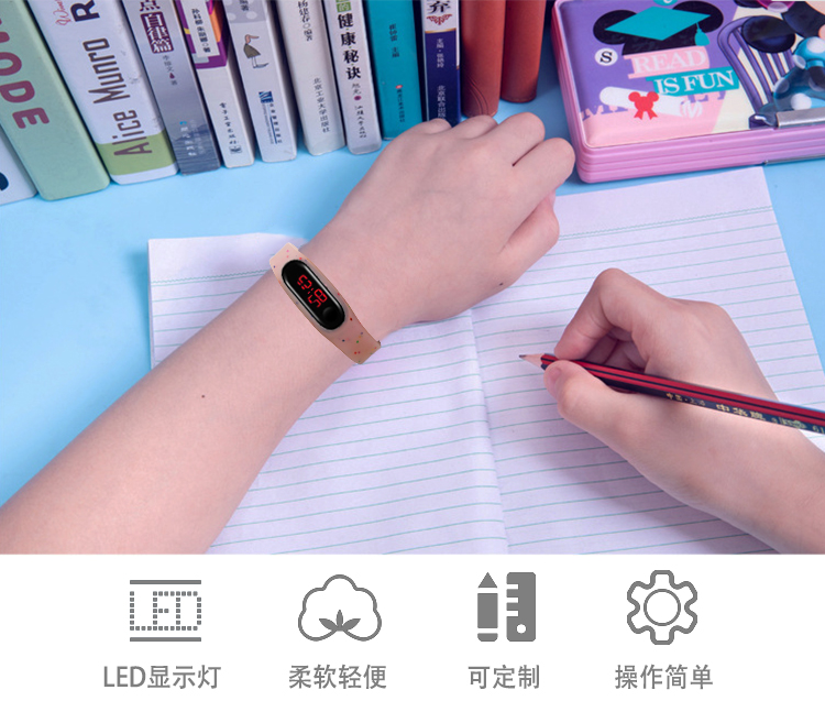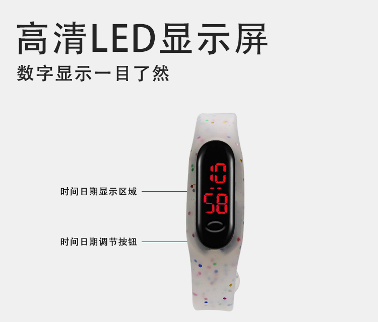 2、硅膠表帶耐磨損,耐高溫,不變形,可以長(zhǎng)期佩帶。外表光滑,手感強(qiáng),是真正的綠色環(huán)保飾品;