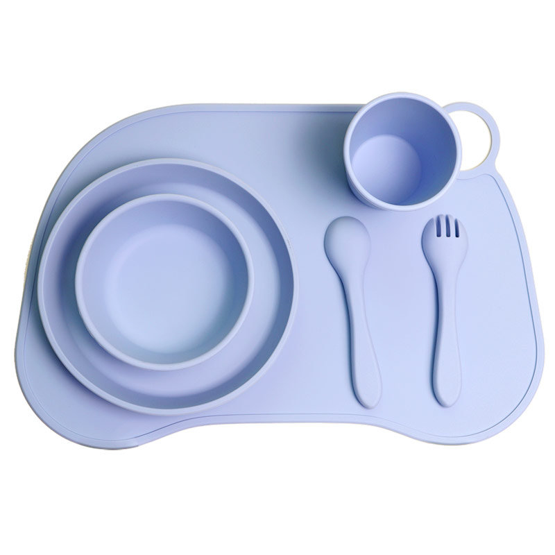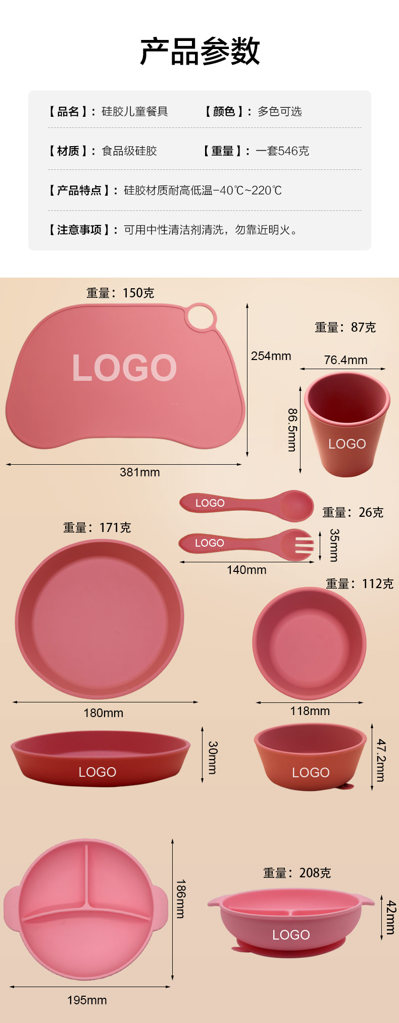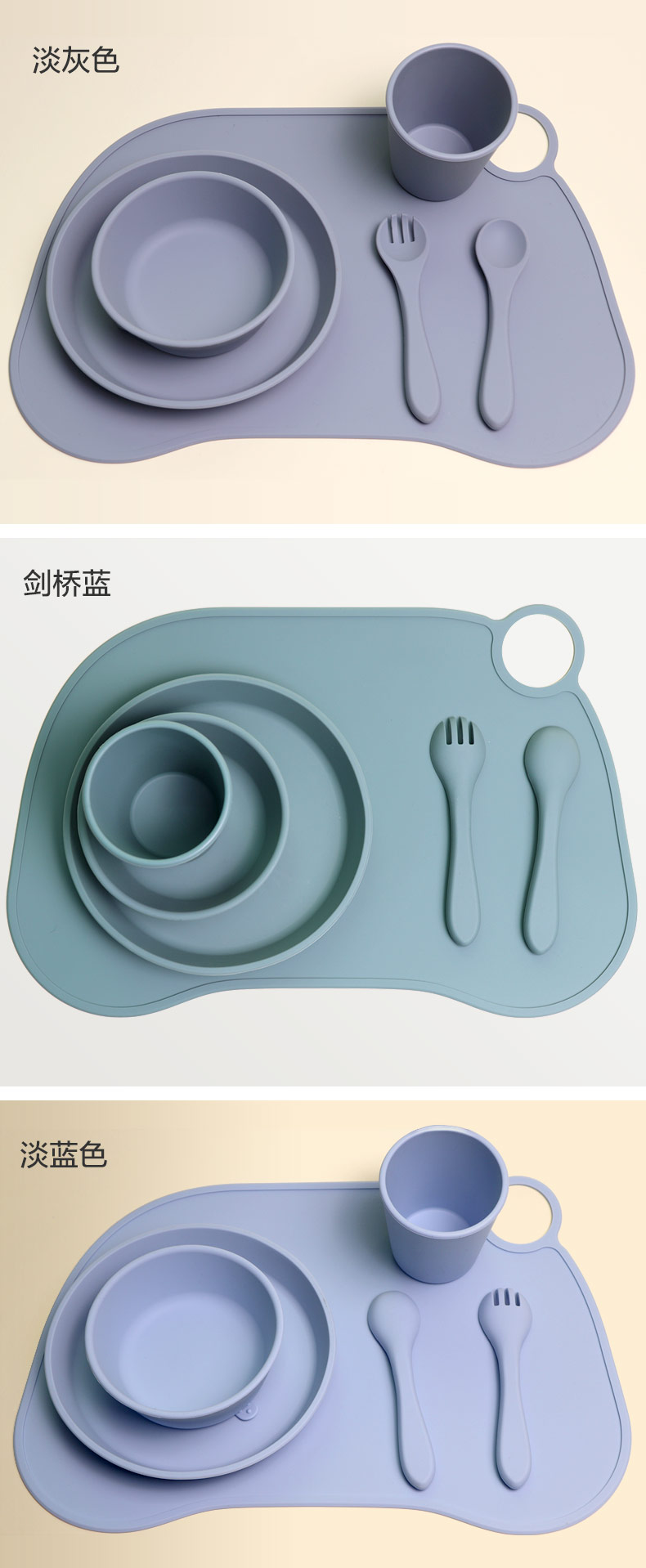 批發(fā)食品級硅膠兒童餐具寶寶喂食硅膠餐盤碗杯子餐墊 套裝