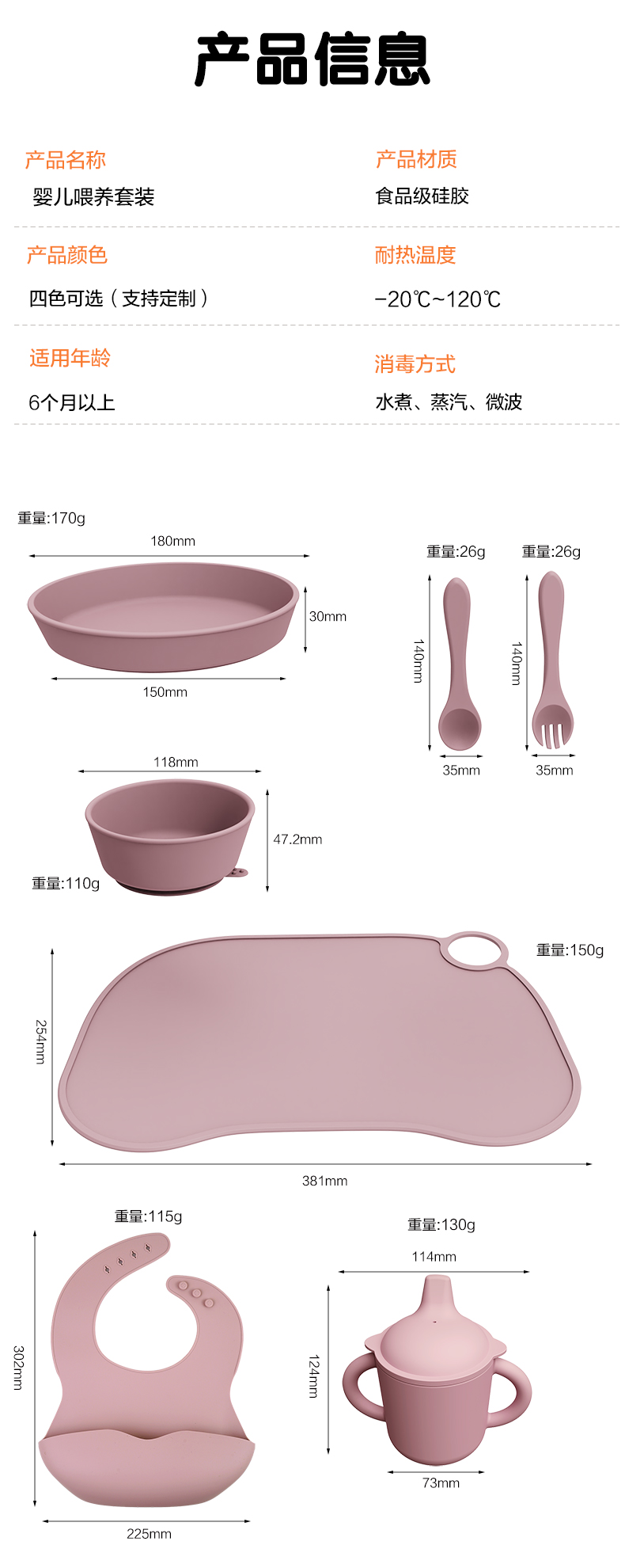 您的位置:首頁 > 產(chǎn)品中心 > 硅膠嬰童用品 > 硅膠圍兜吸盤碗大勺子可水煮食品級(jí)母嬰硅膠喂養(yǎng)餐具套裝