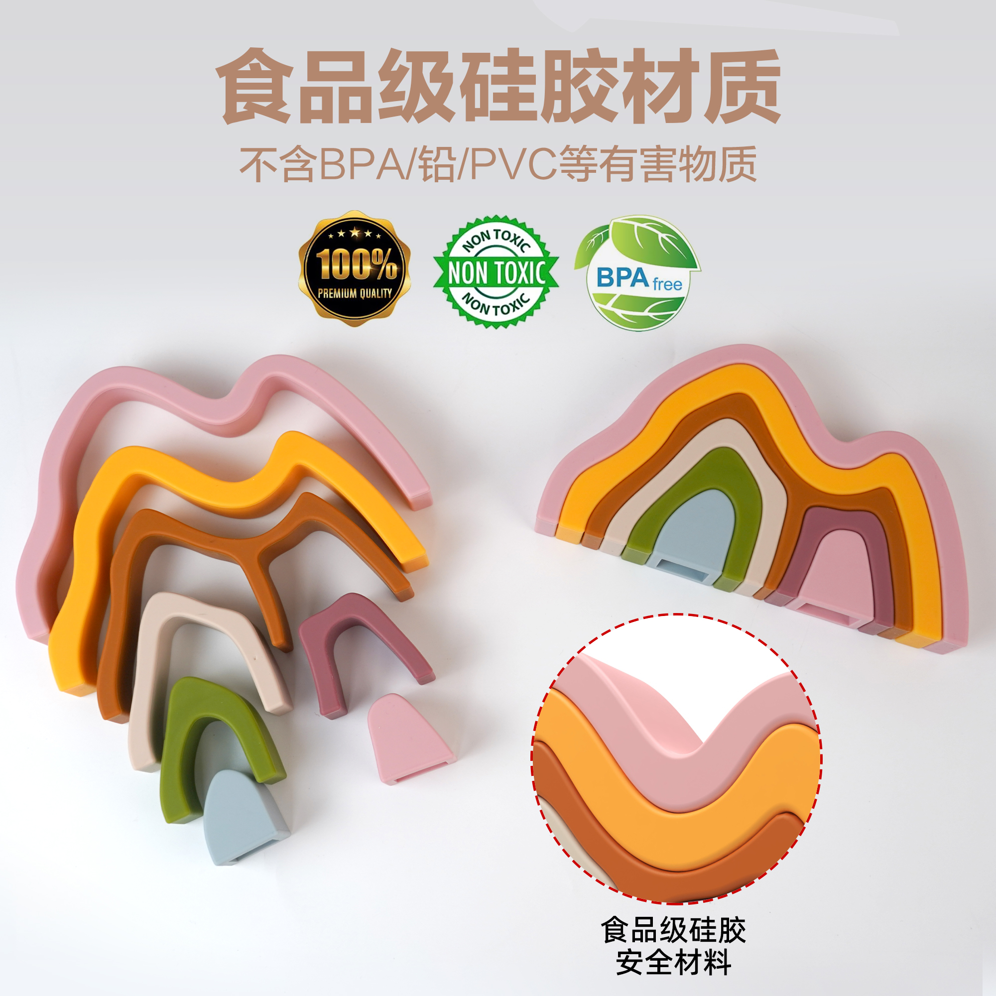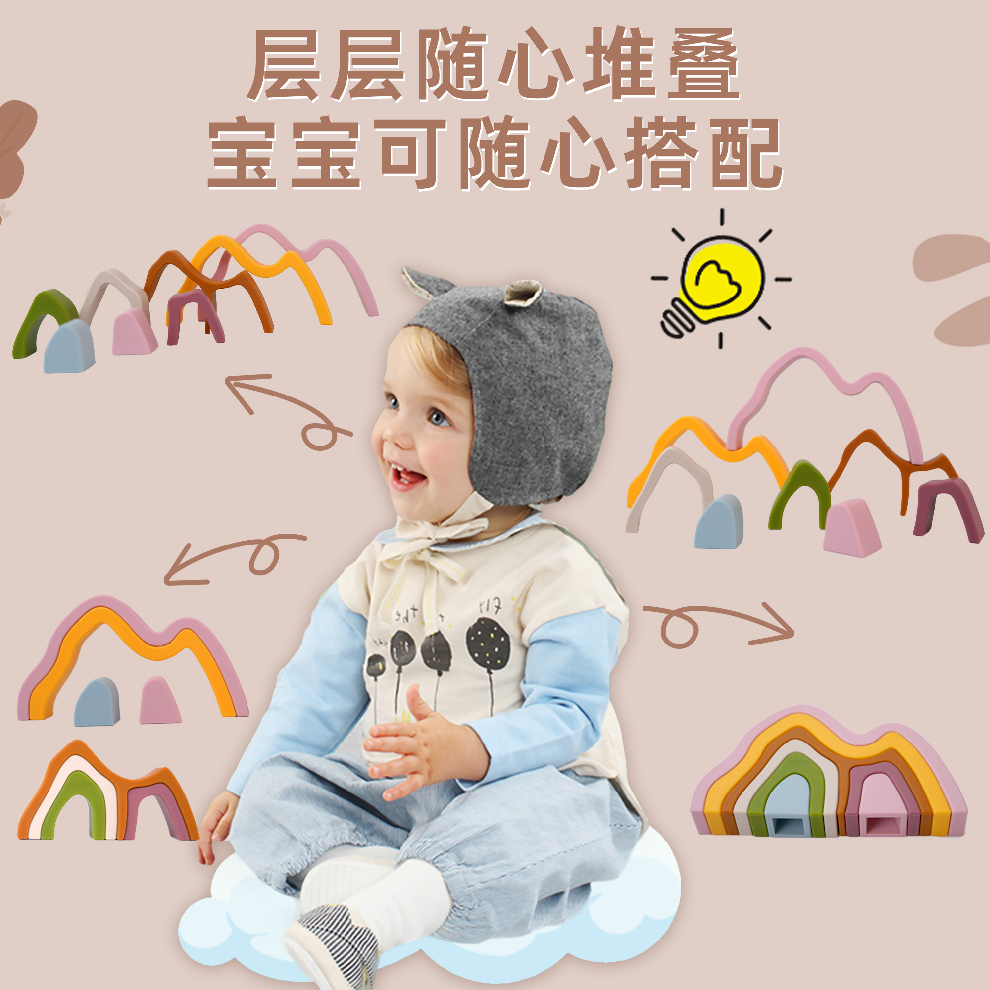 硅膠疊疊樂(lè)積木山玩具可啃早教大腦開(kāi)發(fā)益智玩具