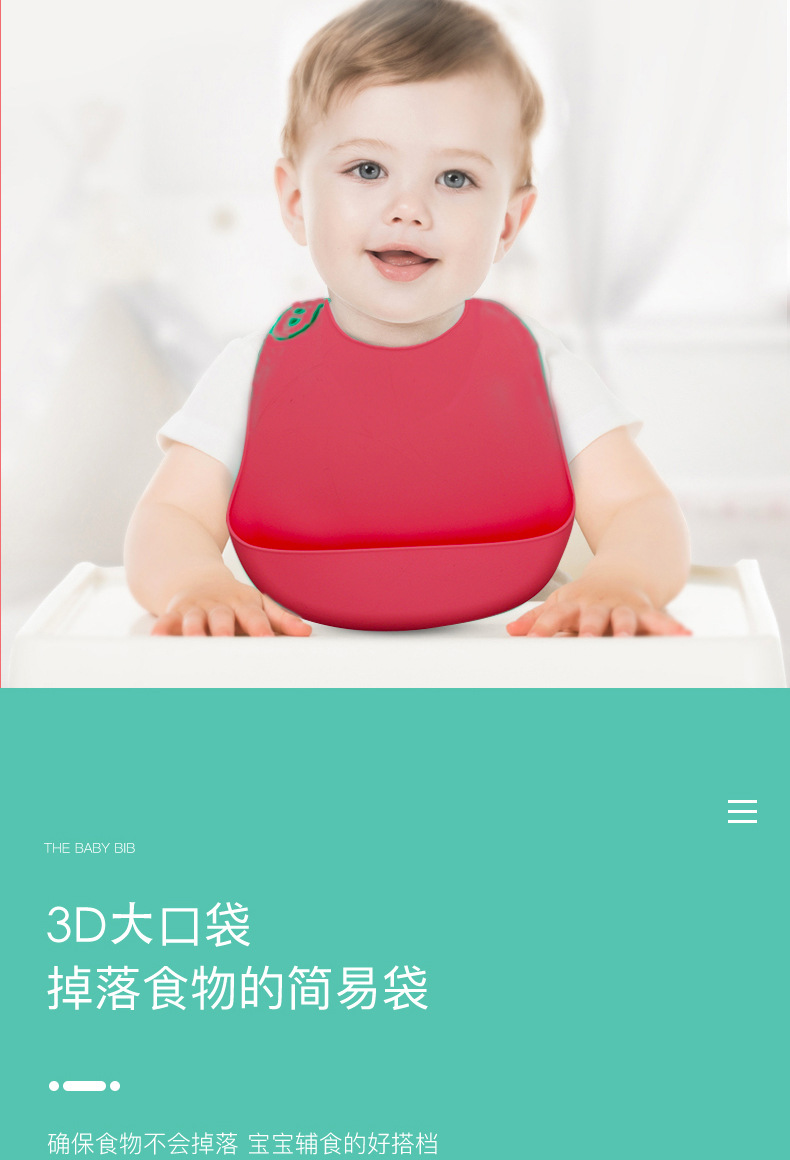 兒童硅膠口水兜定制,寶寶吃飯輔食神器硅膠圍兜圍嘴代加工