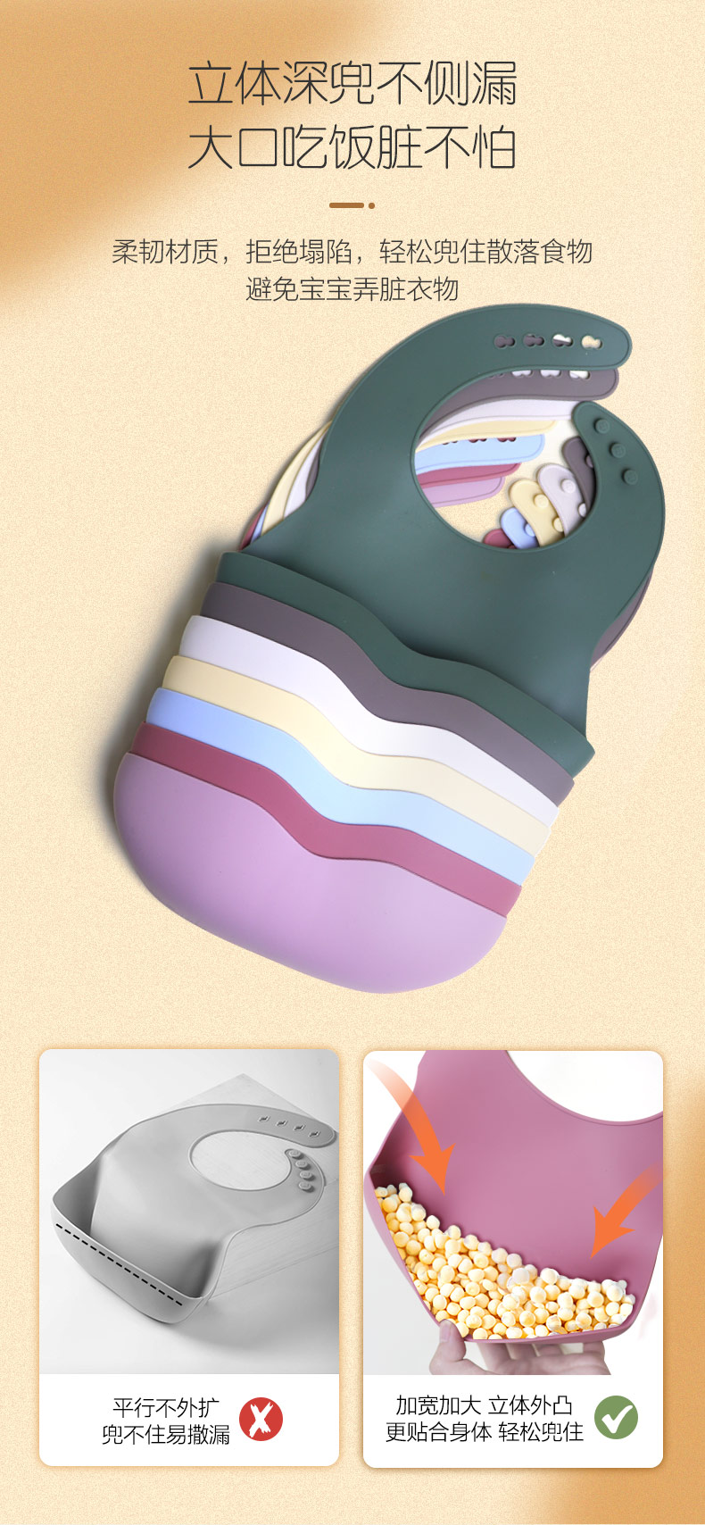 硅膠嬰兒寶寶吃飯圍兜純色立體兒童飯兜