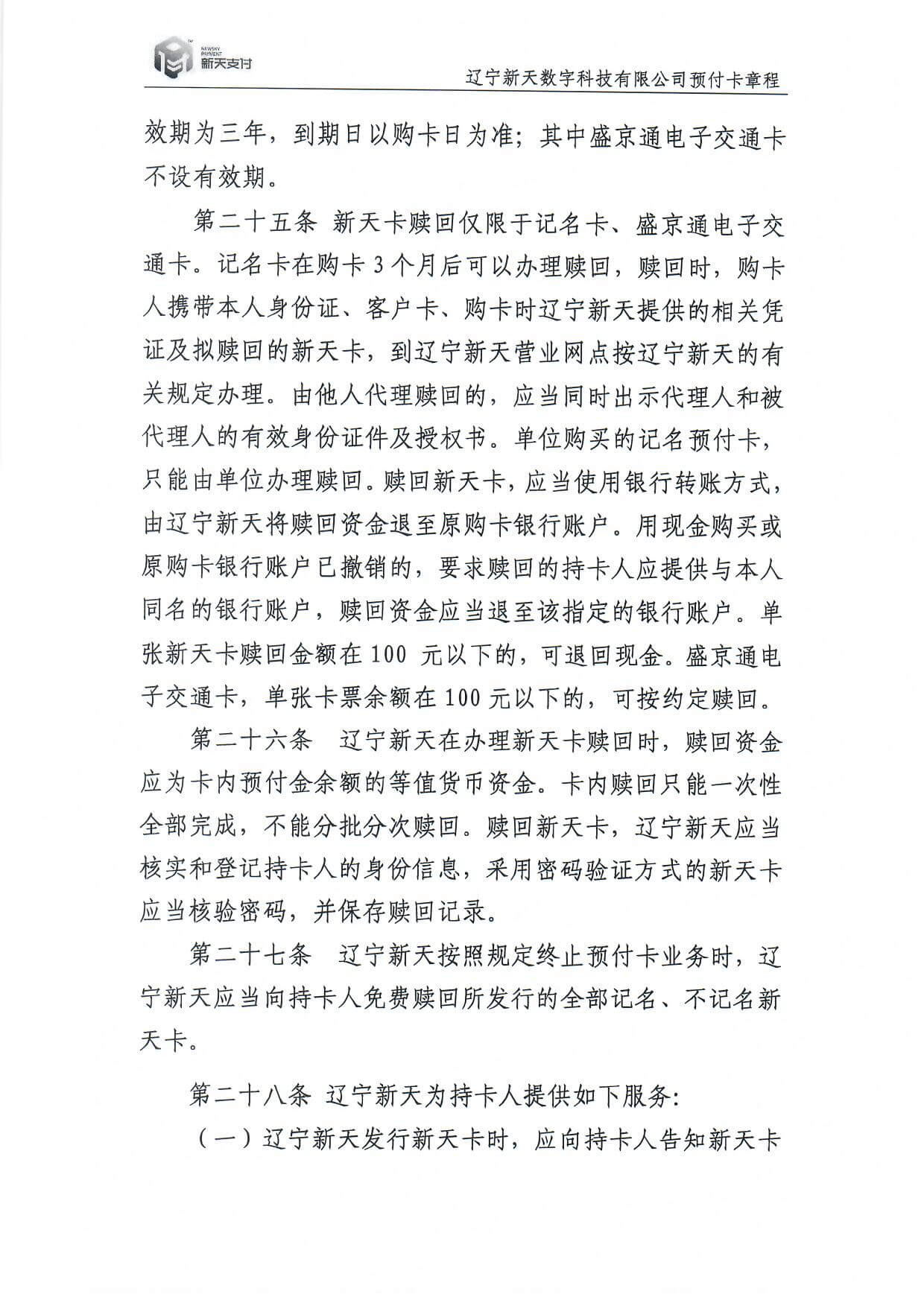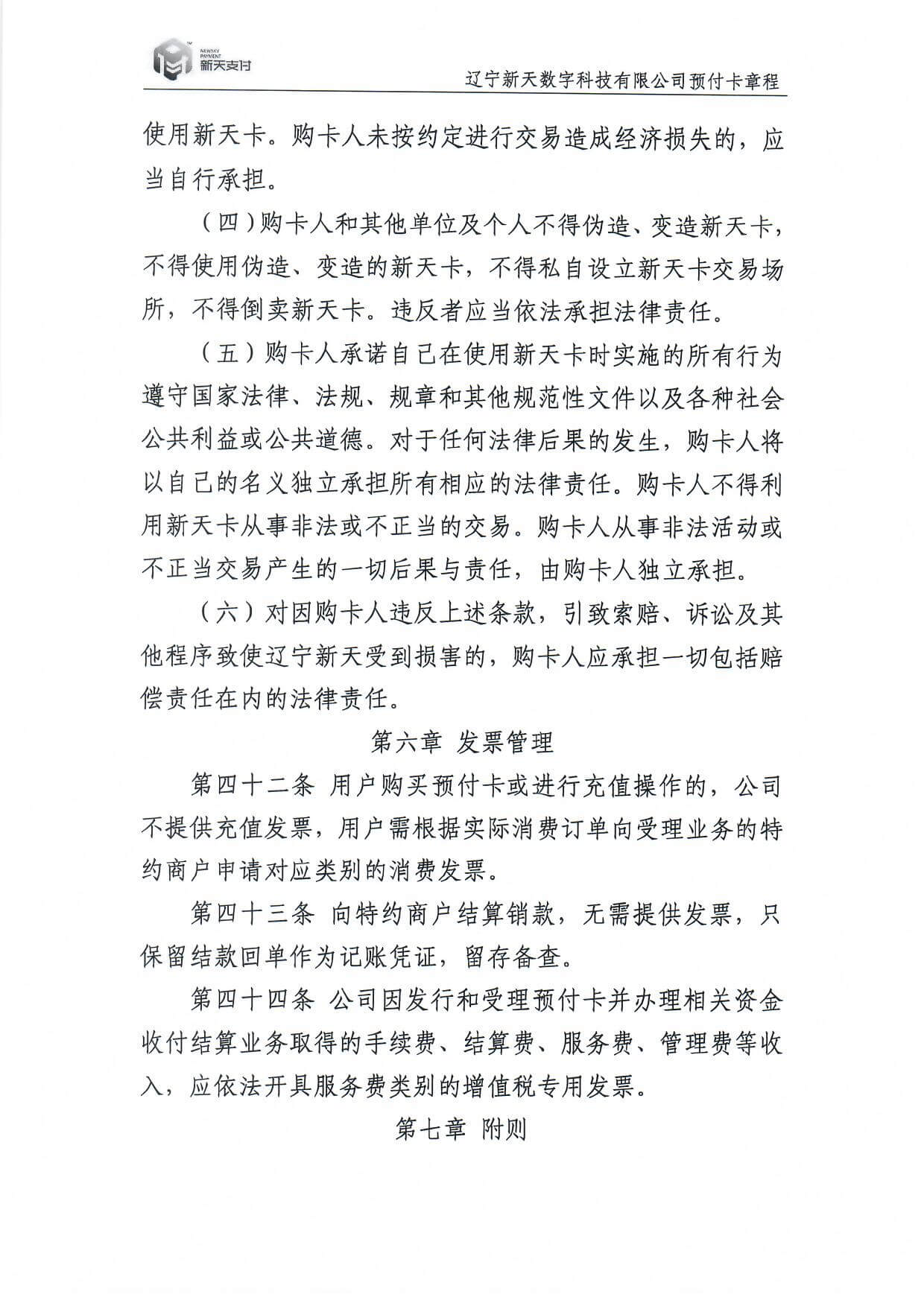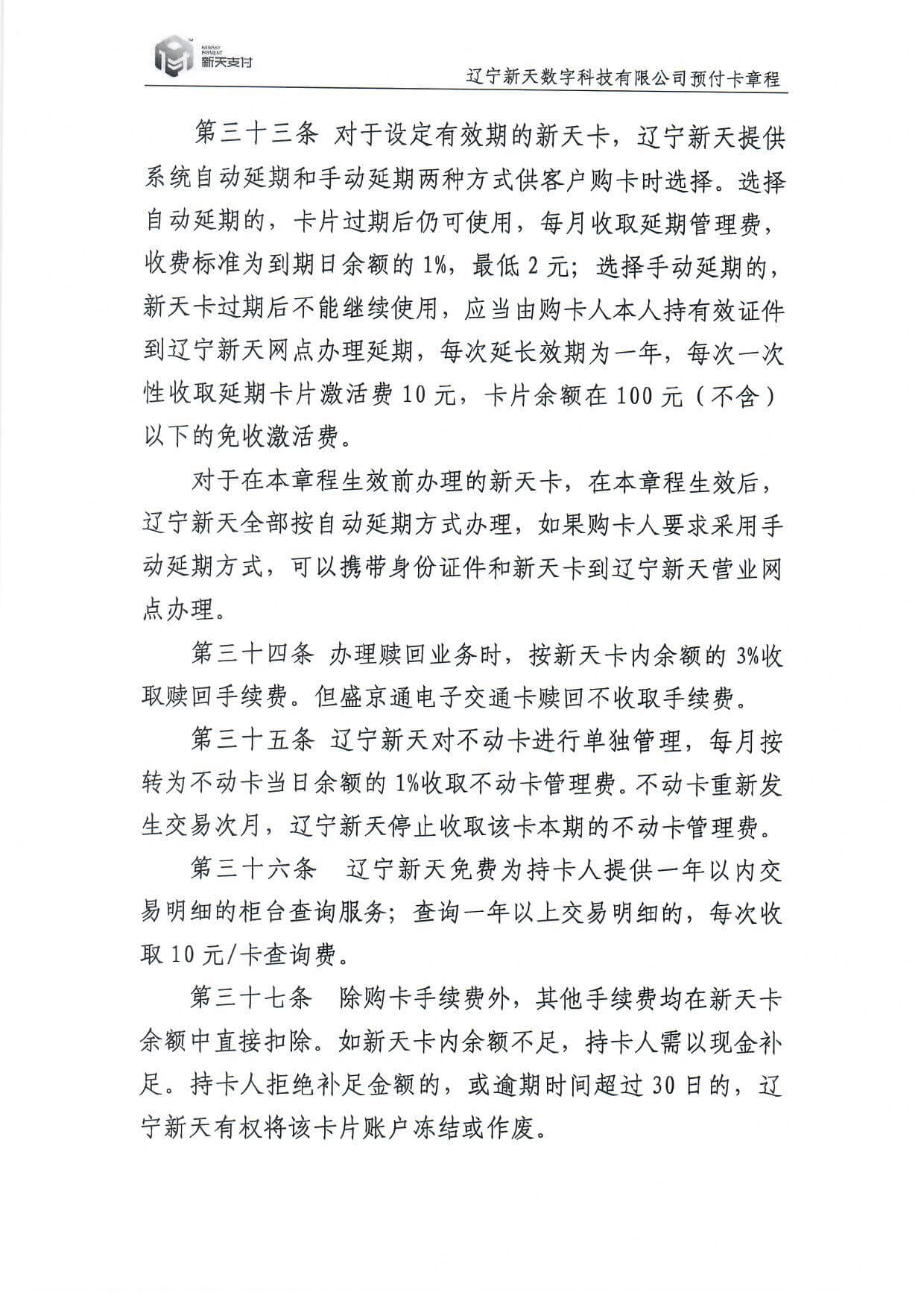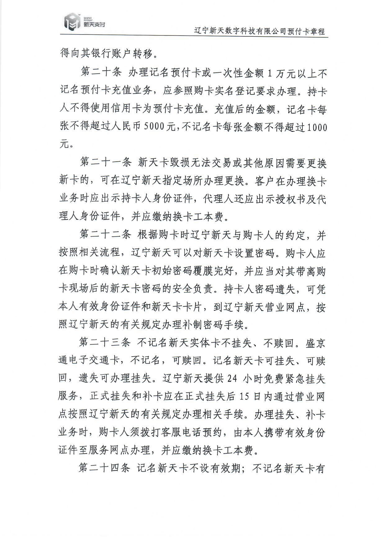 新天卡業(yè)務>預付卡章程