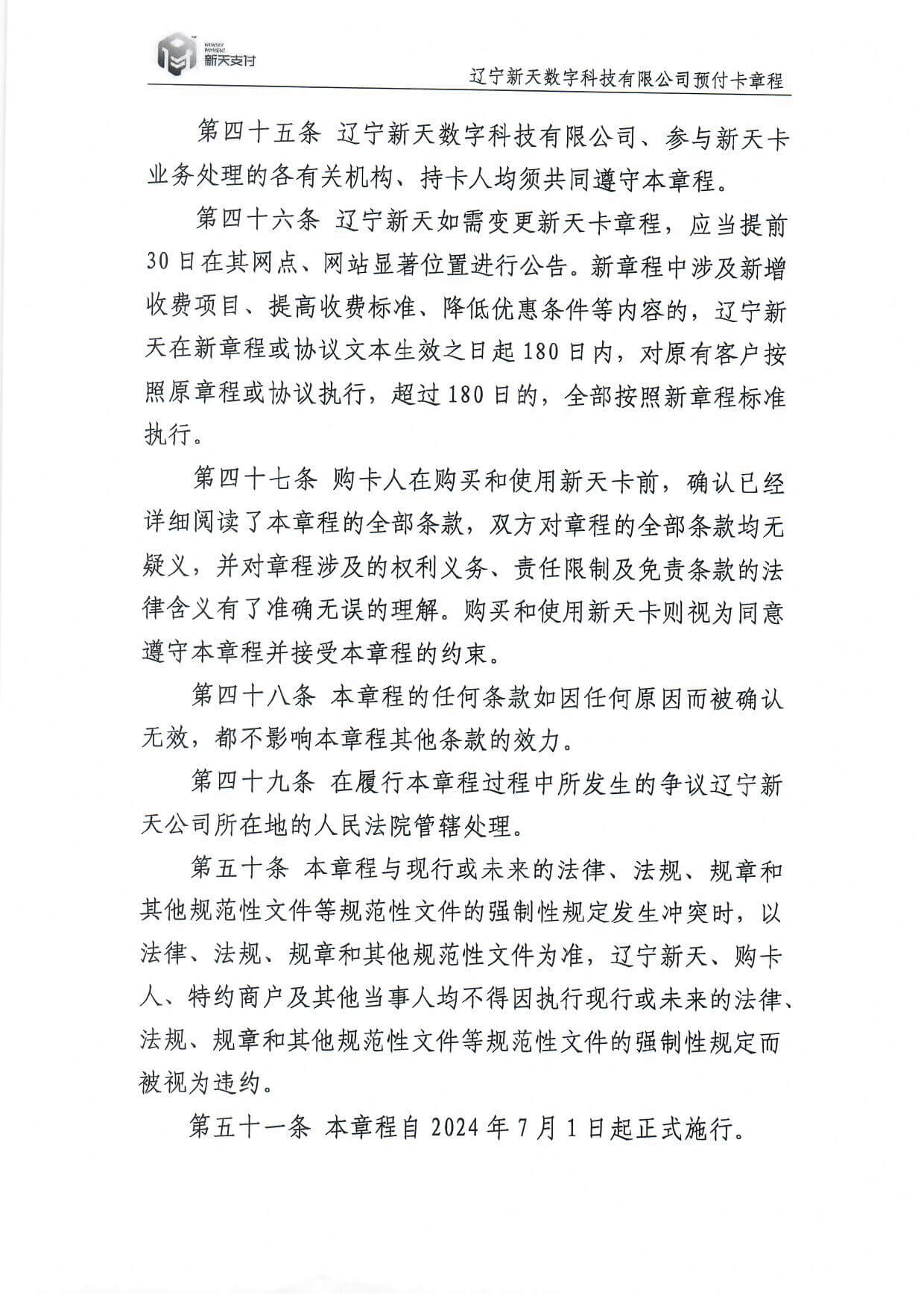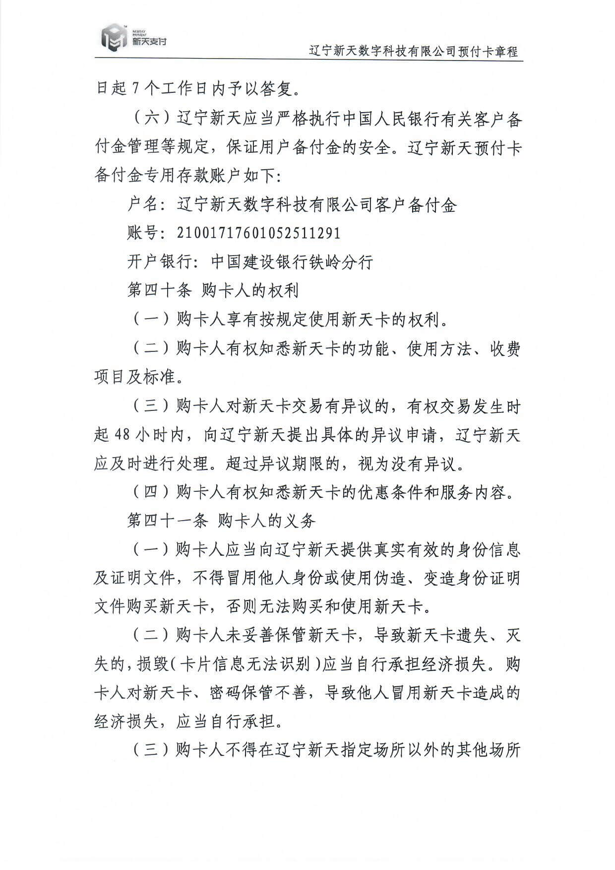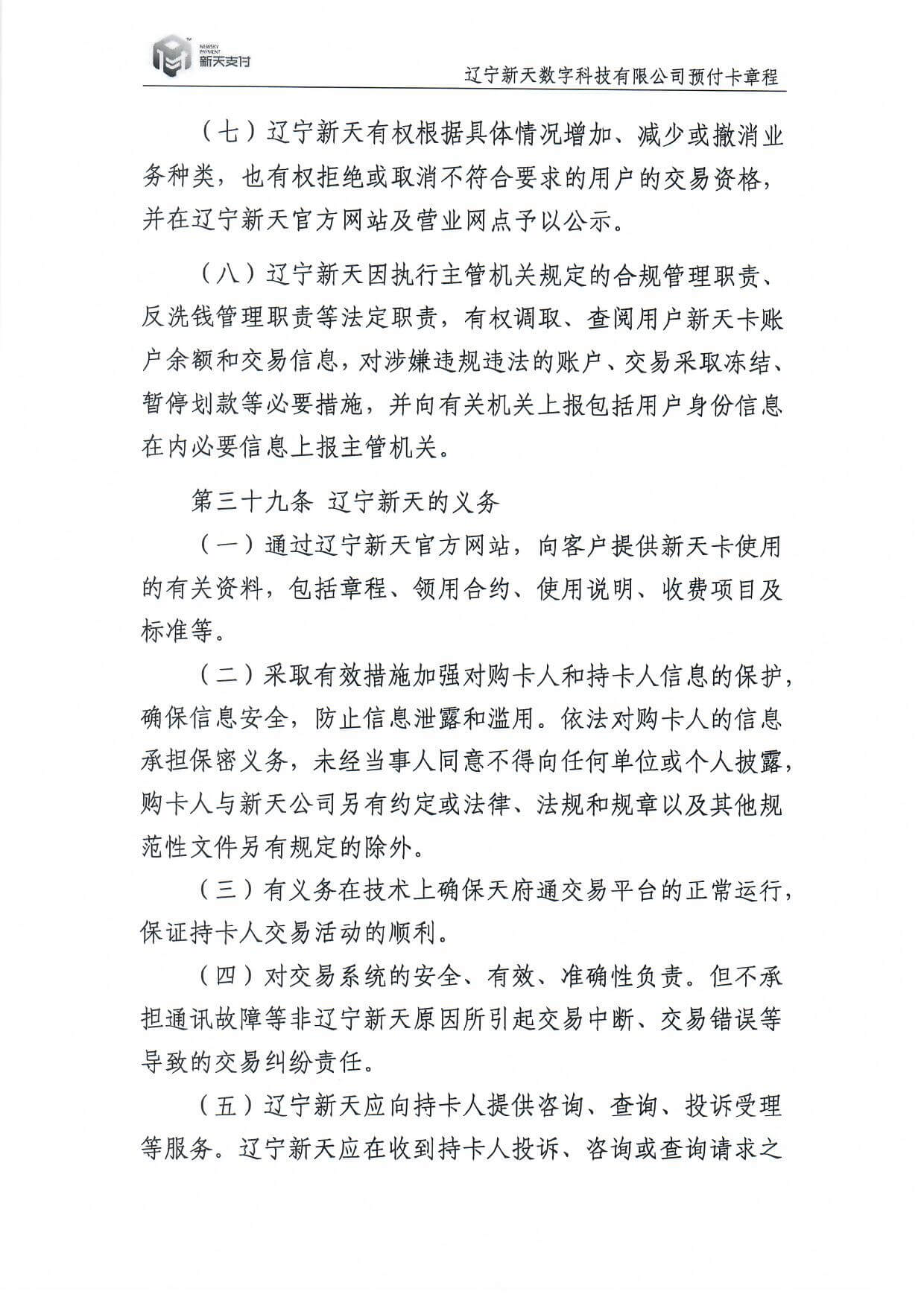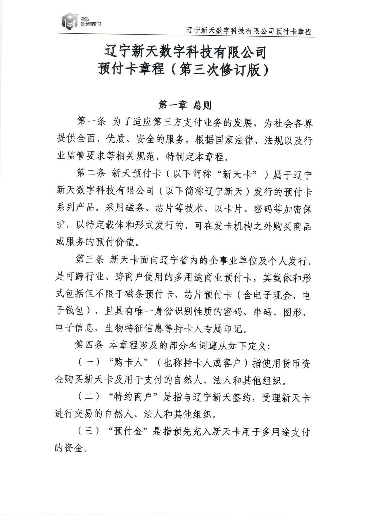 新天卡業(yè)務>預付卡章程