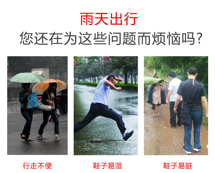 一年365天有150天雨季,尤其是在這南方的回南天比較嚴(yán)重的時(shí)候,連續(xù)一個(gè)月見不到太陽(yáng)那是正常不過(guò)的事情了,無(wú)論是鄉(xiāng)村泥濘的小路上上學(xué)的孩子,或是上下班的工作者,這時(shí)候就可以考慮使用我們公司設(shè)計(jì)生產(chǎn)的硅膠雨鞋套,希望對(duì)您的出行有所幫助。